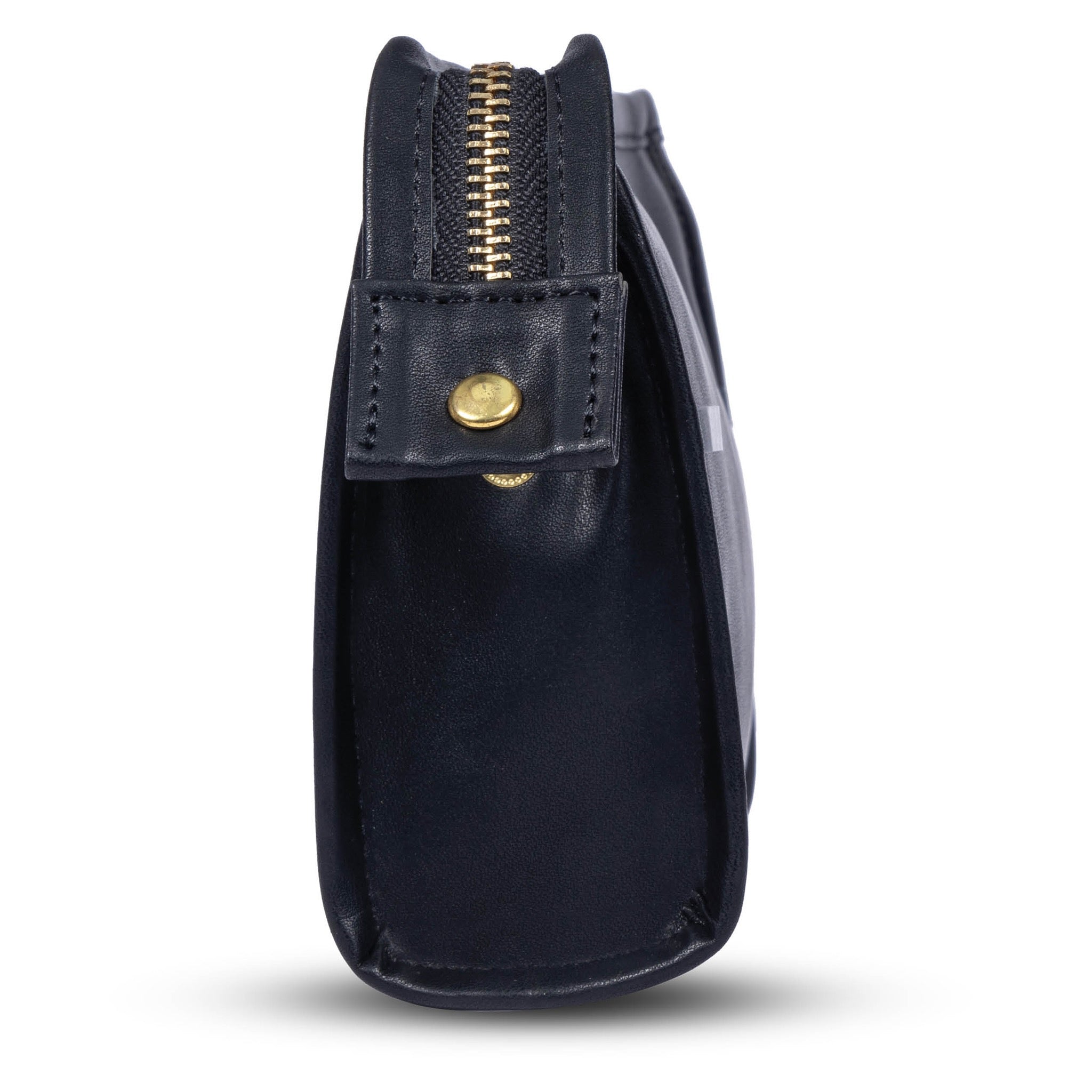 Beautiful faux leather PU cosmetic bag. Hand stitched detail, black wipe-proof lining and quality contrast gold metal YKK zip.